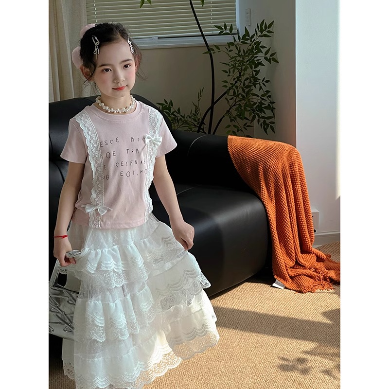 女童T恤2025夏季新款儿童洋气蕾丝上衣中大童韩版休闲短袖打底衫