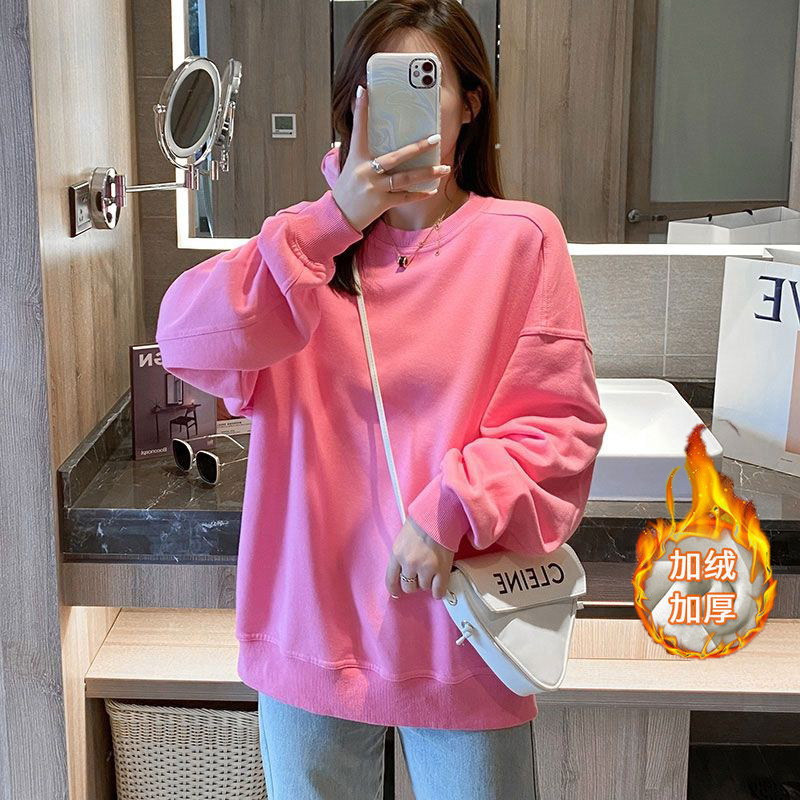 纯色圆领卫衣女2025春新款设计感小众长袖秋季上衣春款枚红色纯棉