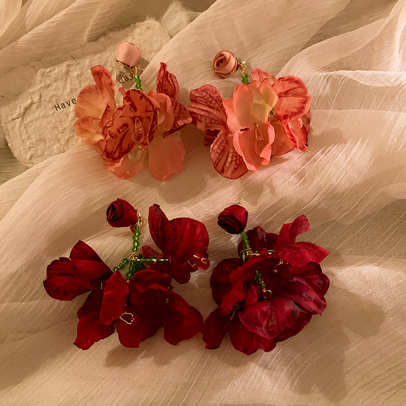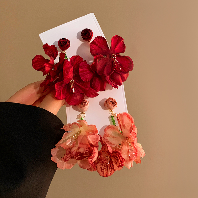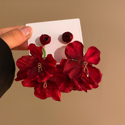 扶摇云间 法式复古红色花朵耳环女高级感夸张度假风独特耳钉耳饰