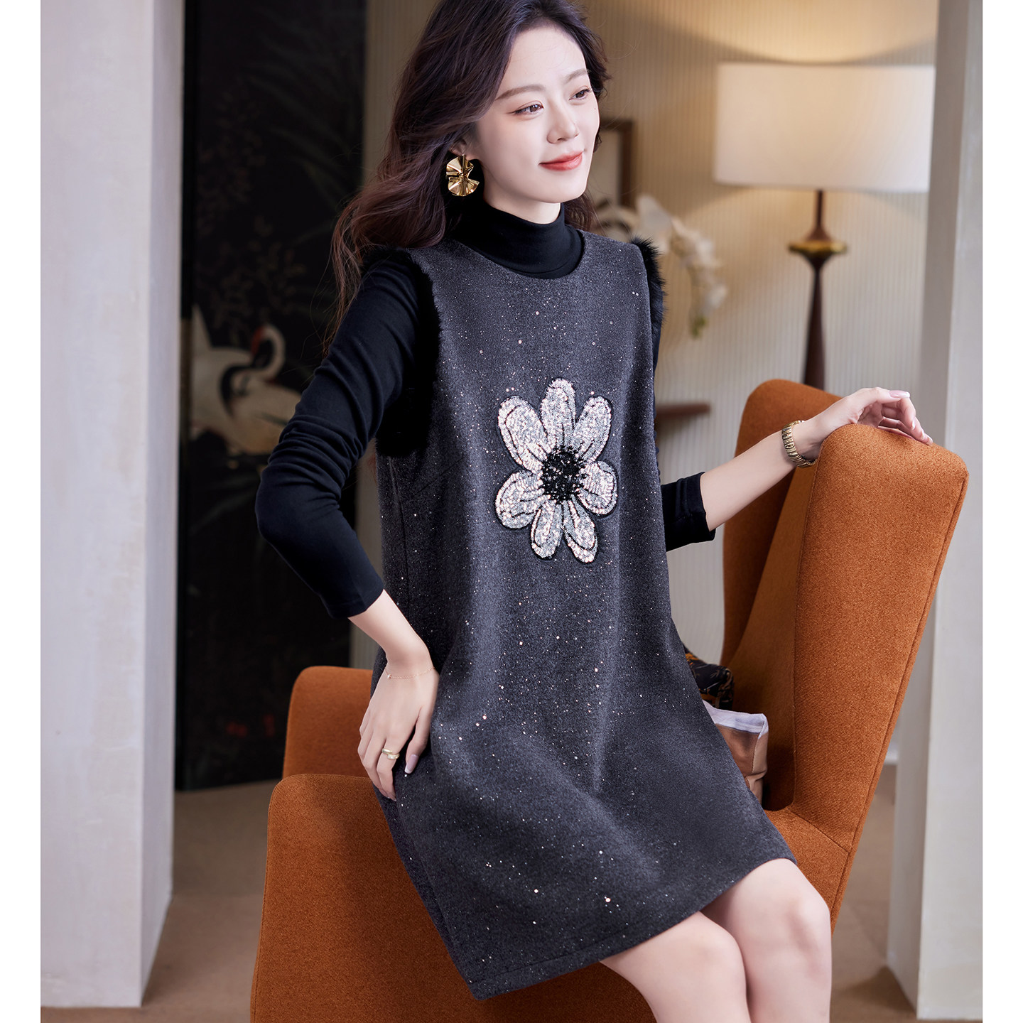 宝诗黎两件套钉珠亮片背心裙2026早春气质韩系时尚优雅直筒连衣裙