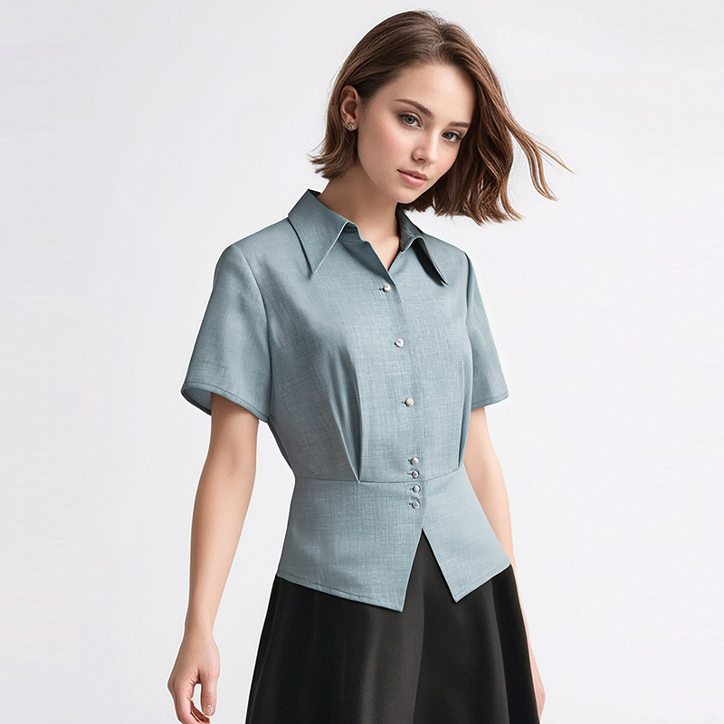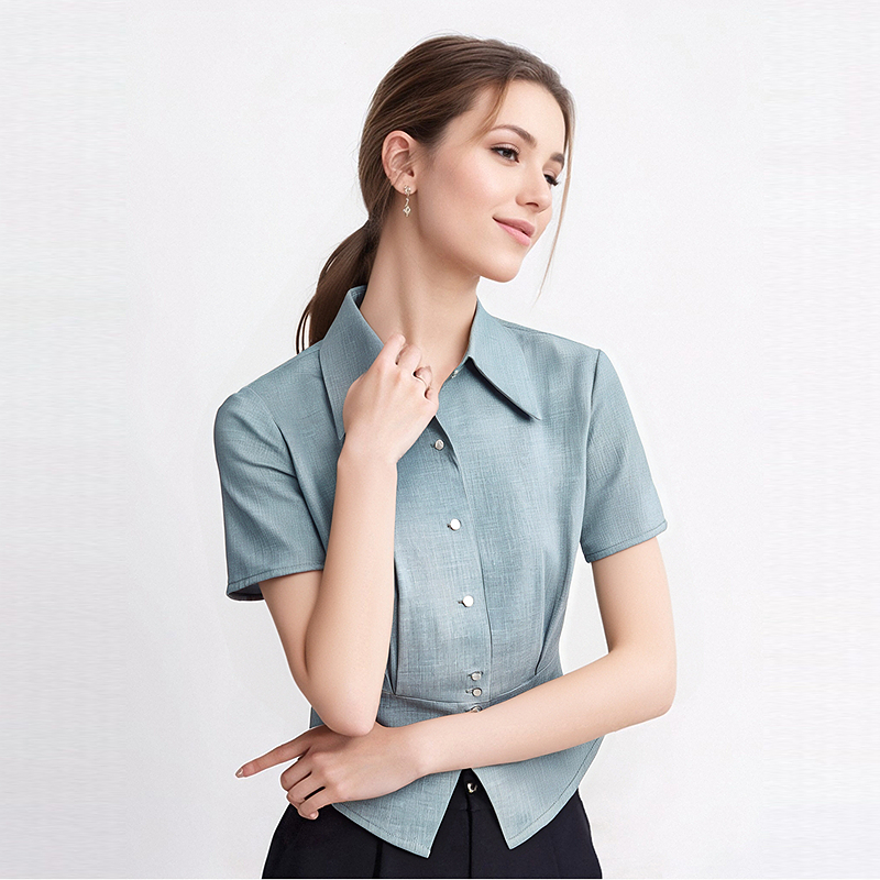 璐丝百丽时尚短袖衬衫女气质百搭休闲修身高级感职业2025新款上衣