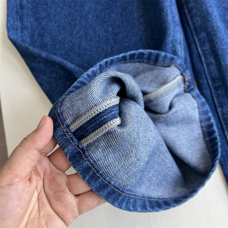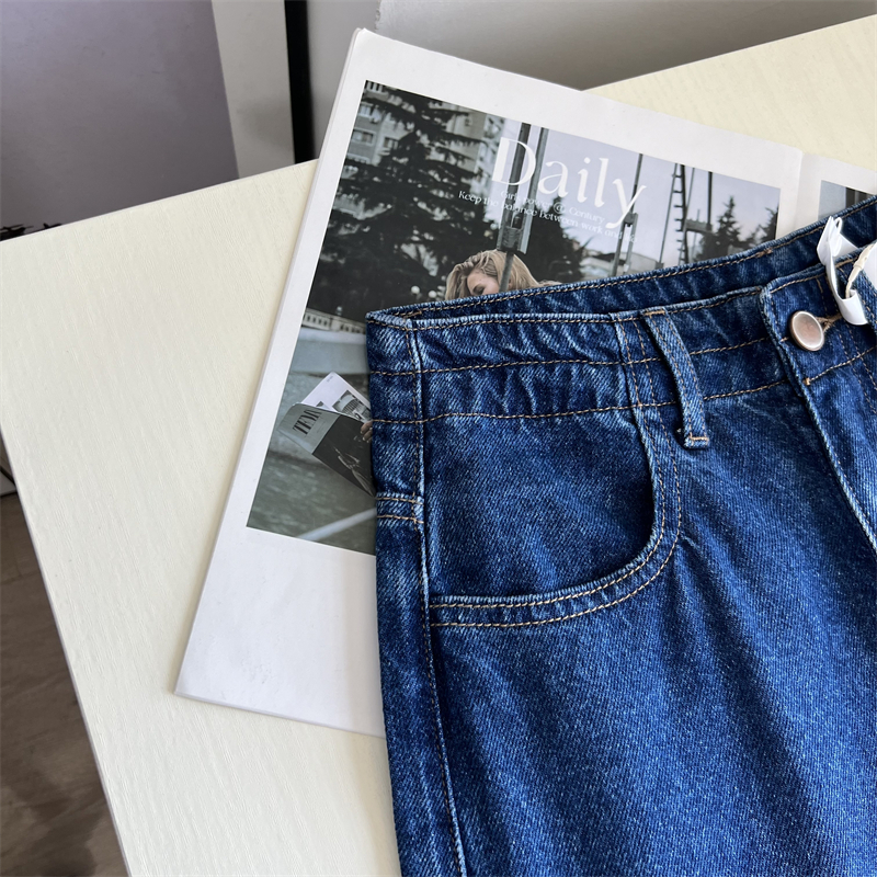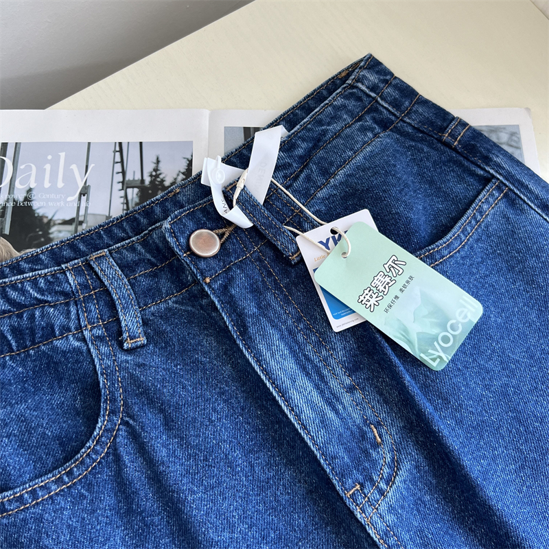 深蓝色有质感莱塞尔牛仔阔腿裤