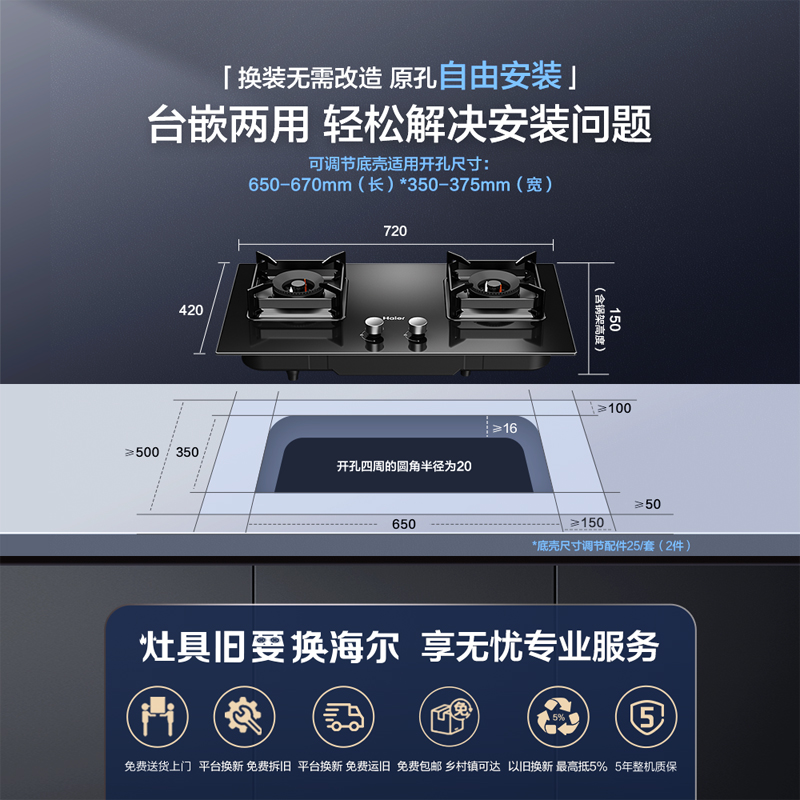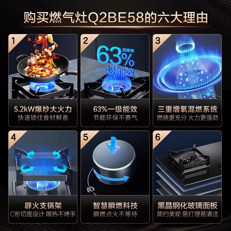 海尔燃气灶煤气灶家用双灶天然气灶台厨房家用烟灶联动灶具Q2BE58