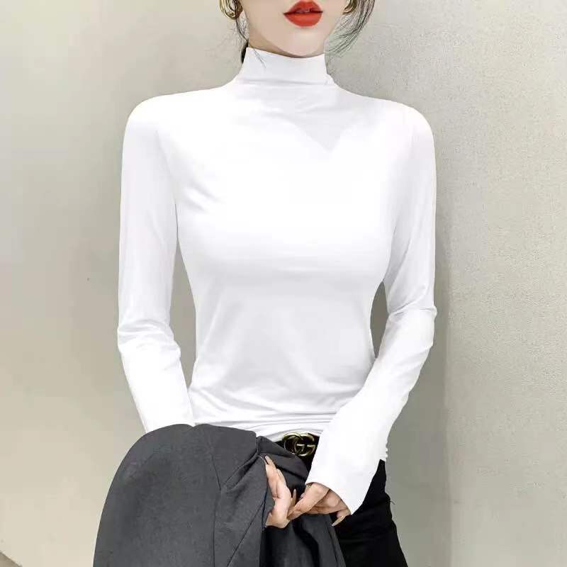半高领打底衫女秋冬百搭洋气黑色2024年新款修身内搭t桖女上衣潮