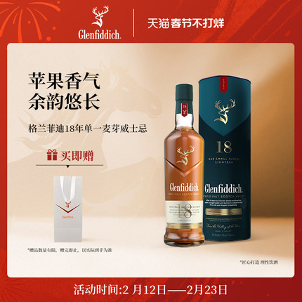 【官方】格兰菲迪18年单一麦芽苏格兰威士忌进口洋酒