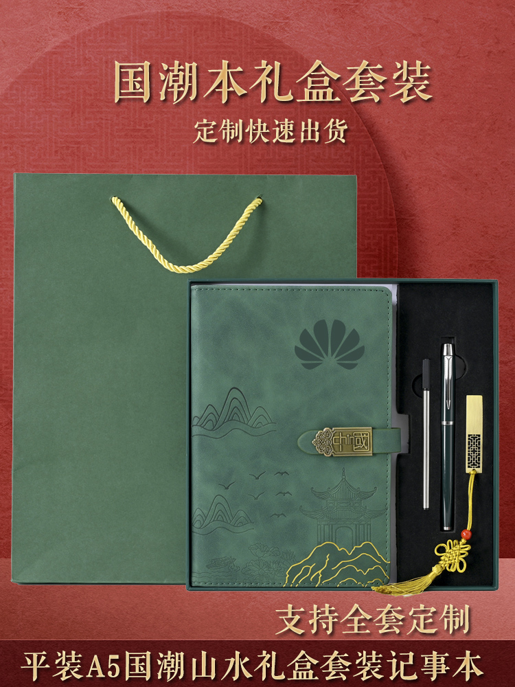 A5国潮山水笔记本礼盒套装活页记事本文创礼品记录本办公记录本书签U盘签字笔套盒装公司伴手礼定制企业LOGO
