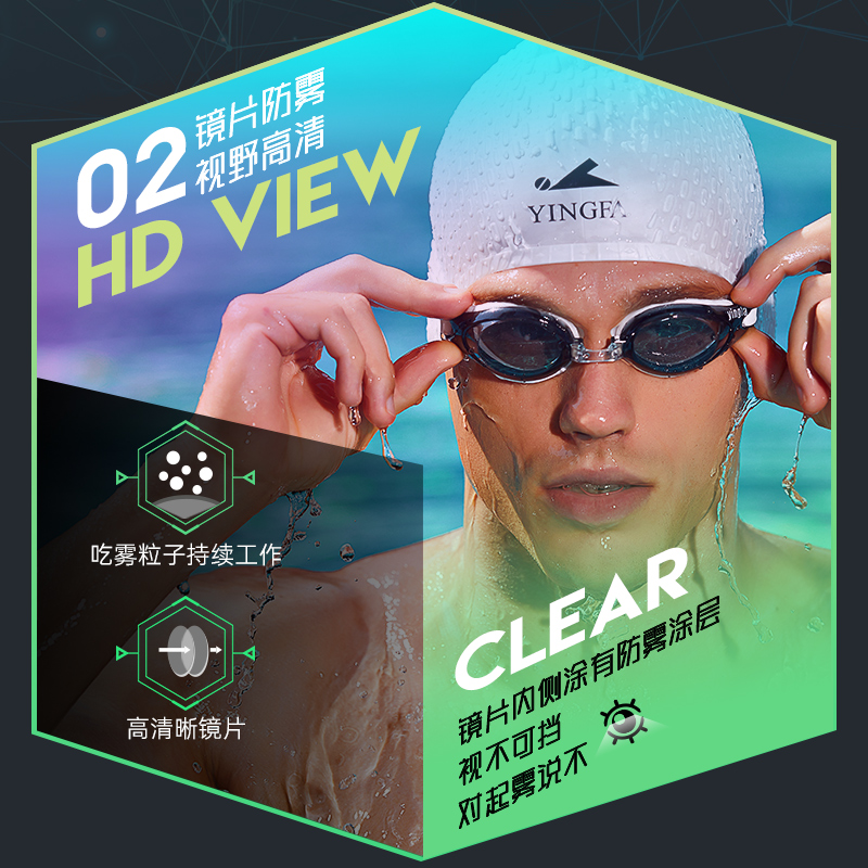 英发游泳眼镜防水防雾高清泳镜男女近视平光镀膜护鼻一体镜帽套装