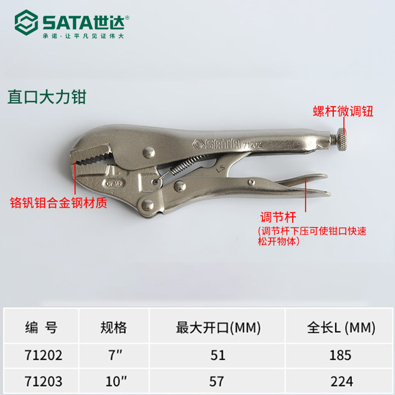 世达工具大力钳10寸多功能直口大力钳五金工具7寸 71203 71202