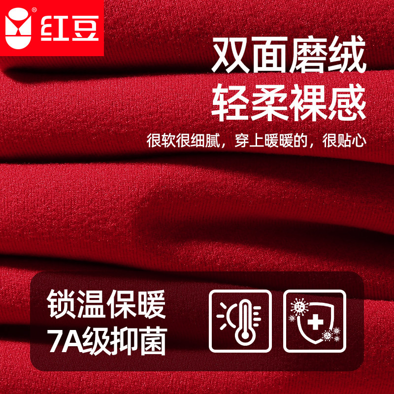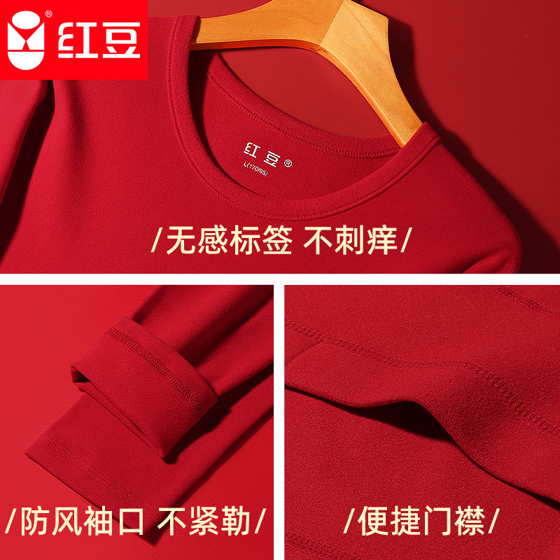 红豆本命年阳离子保暖内衣男士大红色套装加绒秋衣秋裤结婚女马年