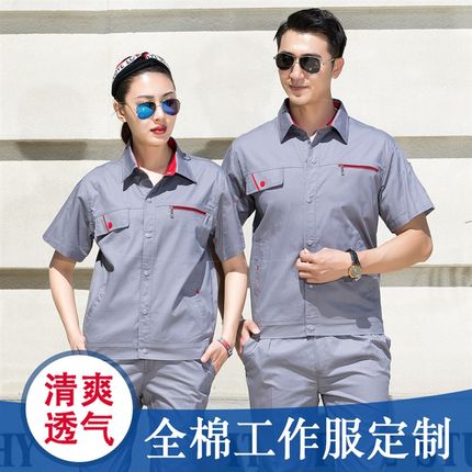 夏季薄款纯棉长袖套装工作服耐磨电焊汽修工厂车间劳保服定制上衣