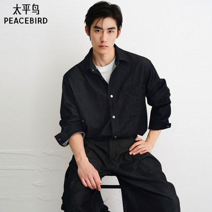 太平鸟男装 休闲衬衫2025秋季新款丝光牛仔衬衫阔版时尚男士衬衫