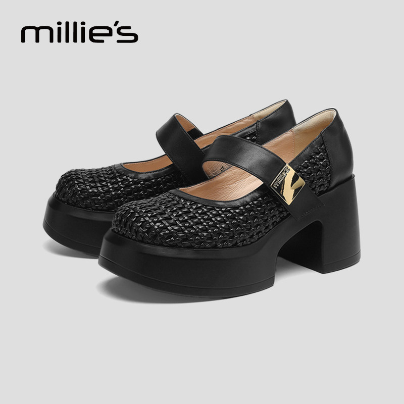 MILLIE'S/妙丽真皮玛丽珍高跟鞋