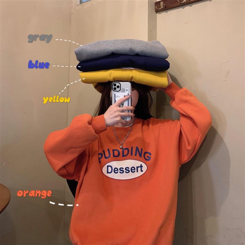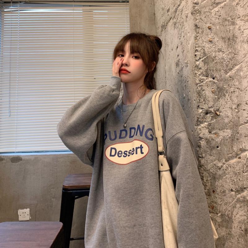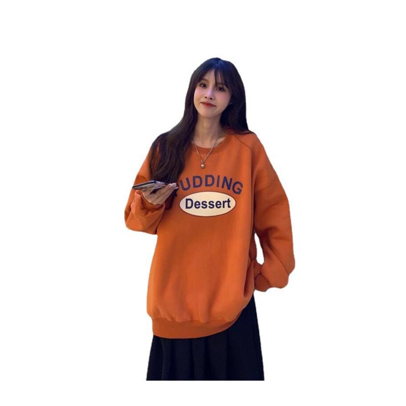 加绒大码长袖印花卫衣女装新款秋冬季跨境日韩休闲风学生百搭上衣