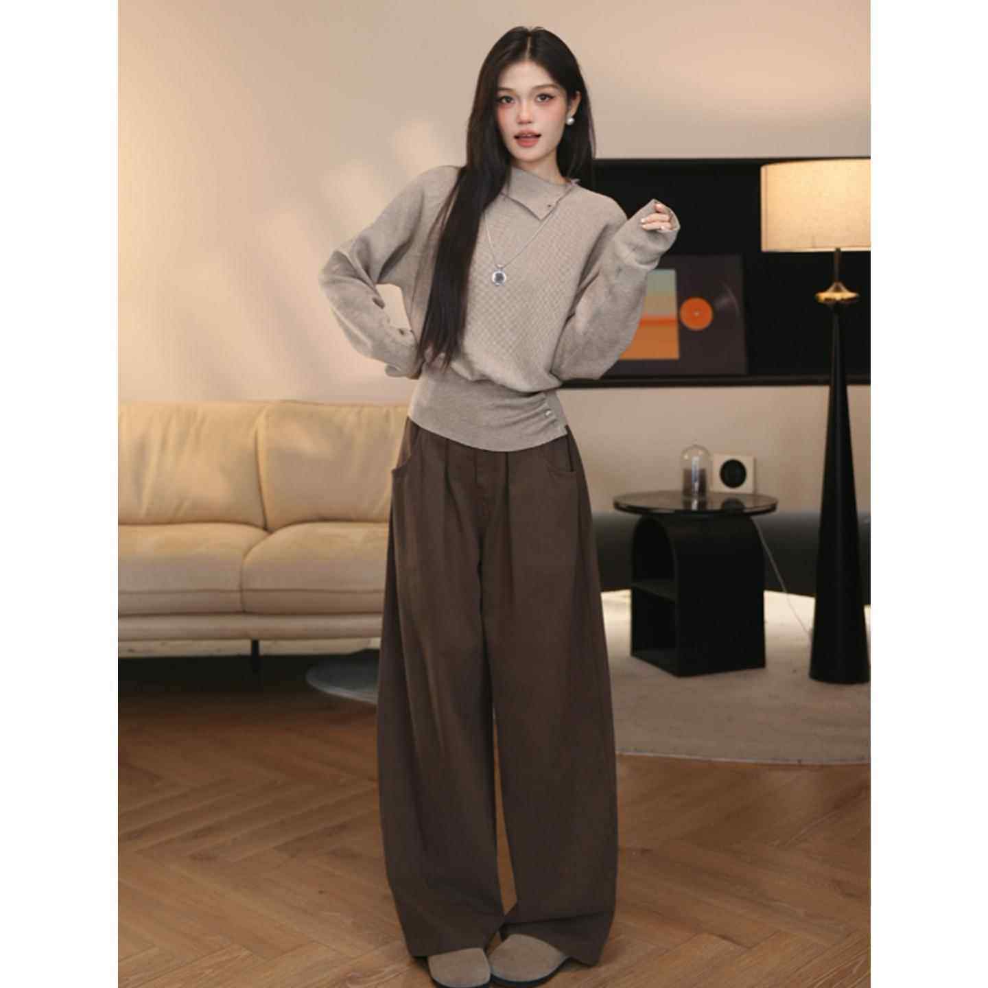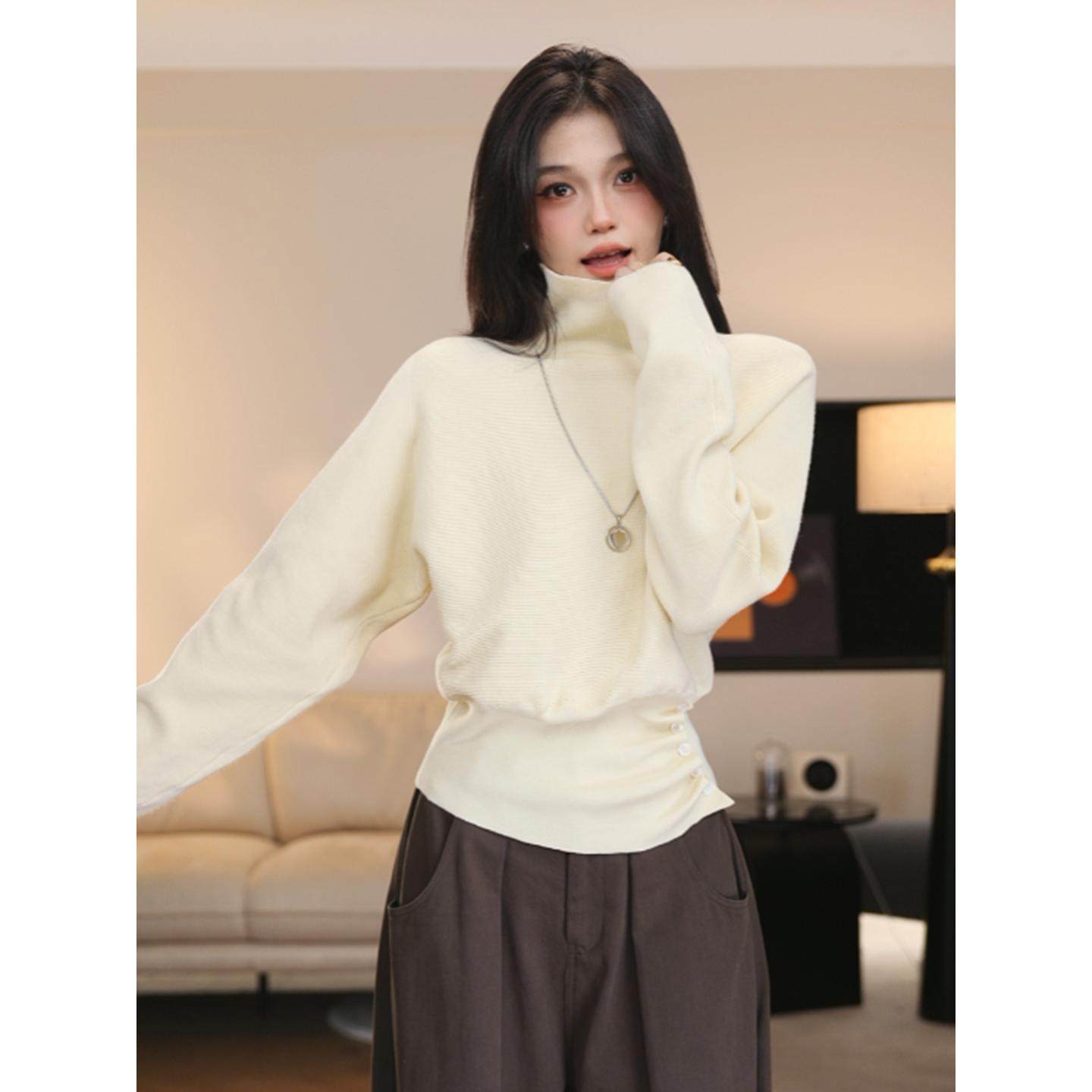 春季灰色感高领套头毛衣女慵懒宽松收腰显瘦打底针织衫0102z