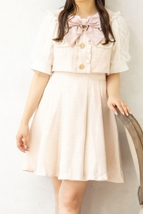 日单lizlisa 原单春夏可爱甜美学院风假两件编制短袖蝴蝶结连衣裙