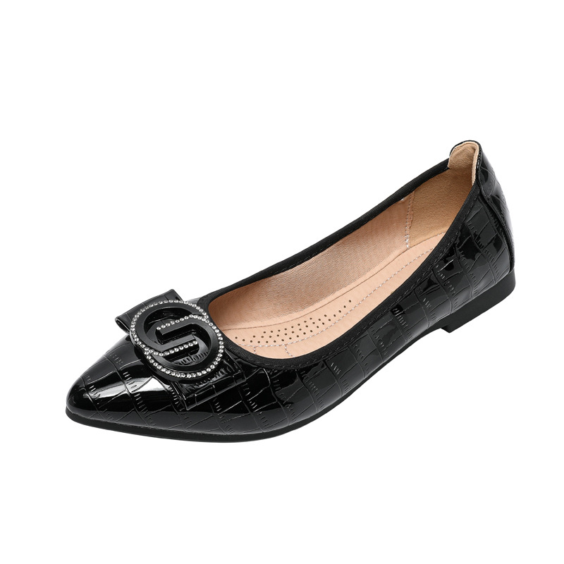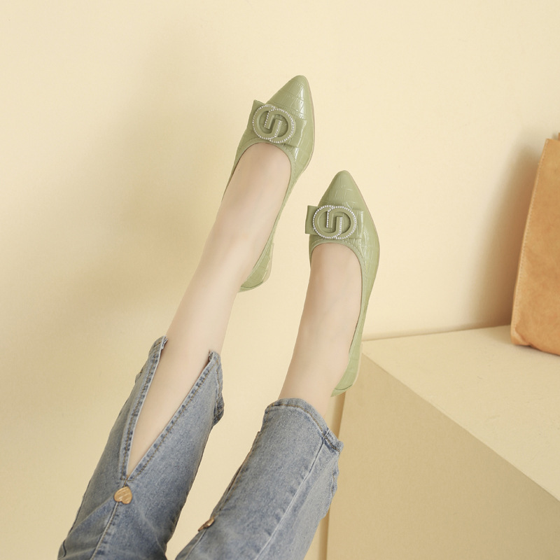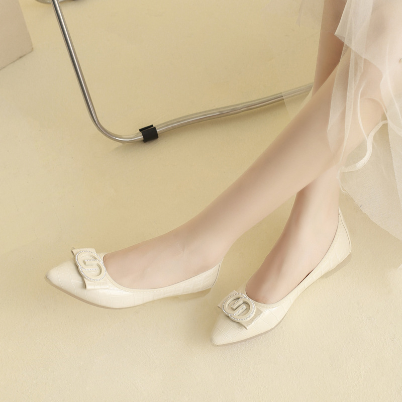 小香风底跟平底浅口单鞋女2025春新款水钻软底尖头女鞋豆豆鞋瓢鞋