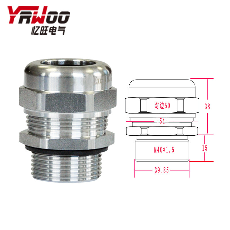 不锈钢防爆格兰头M40*1.5M42M48*2.0电缆防水接头密封固定头PG头