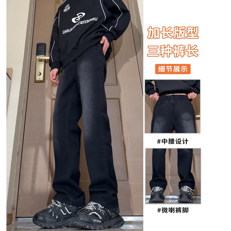 微喇牛仔裤男加长版高个子190男生秋冬青少年潮牌休闲长裤子直筒