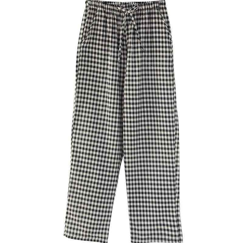 长裤纯棉纱布女小格子家居裤