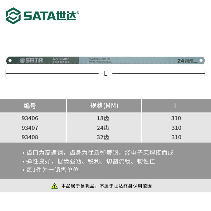 世达锯条sata五金切割工具金属钢锯条高速钢锯条钢丝锯条片93406