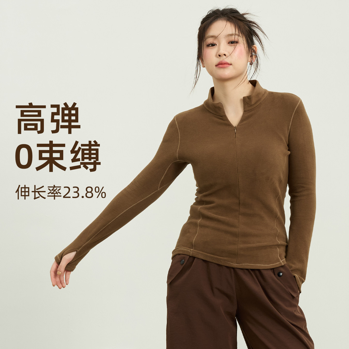 加绒瑜伽服外套女大码运动上衣胖mm跑步训练健身服秋冬保暖打底衫