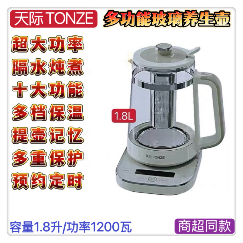 天际全自动玻璃养生壶智能煮粥煲汤燕窝花茶电烧水壶1.8L多功能