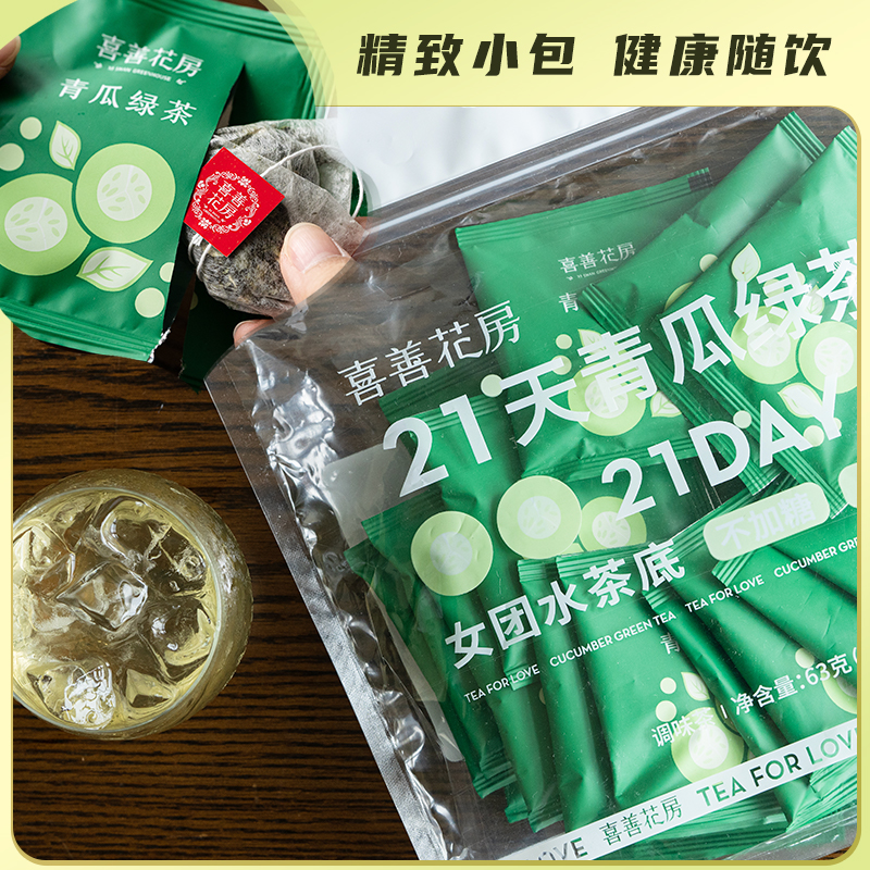 【专区任选】日食记喜善花房青瓜绿茶包21包冷热泡茶叶茉莉水果茶