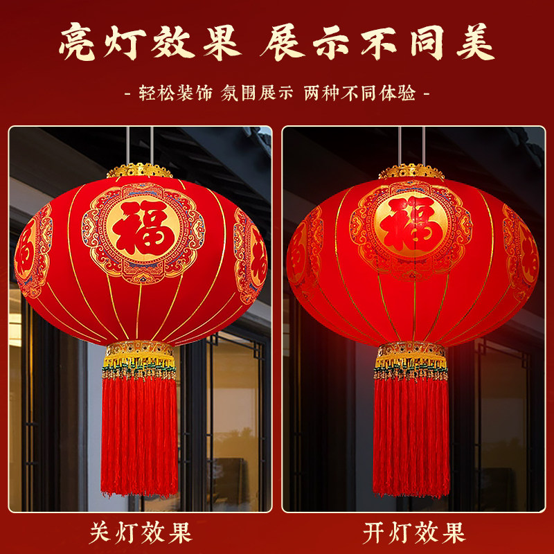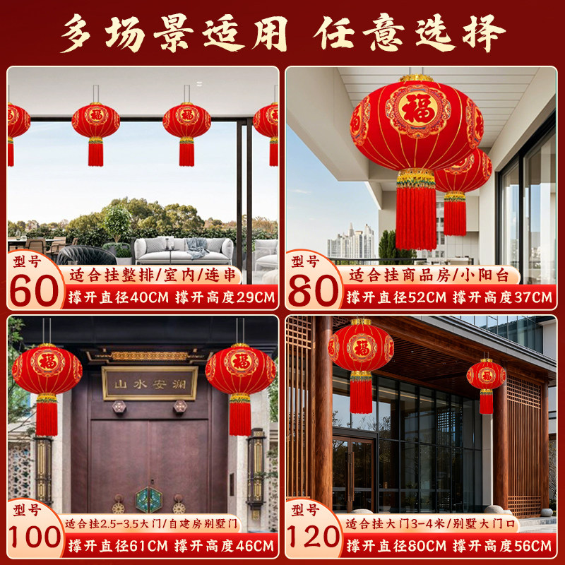 2026新款大红灯笼一对阳台挂饰过新年装饰户外植绒春节大门口灯笼