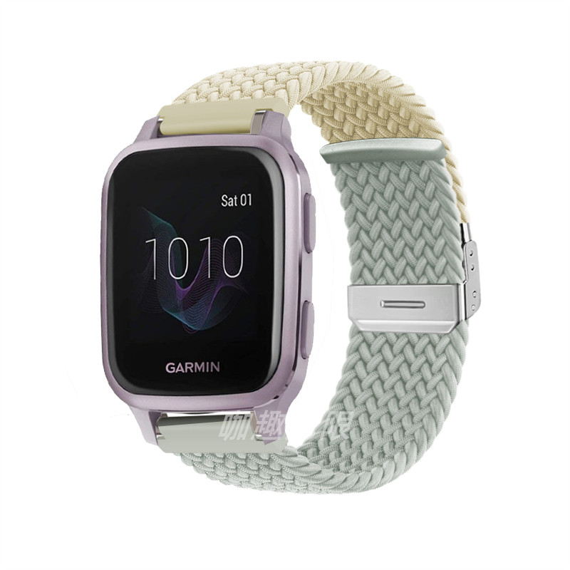 适用佳明手表venu2plus/sq2表带拼色尼龙garmin forerunner265S/255/245编织腕带透气回环vivomove trend表链