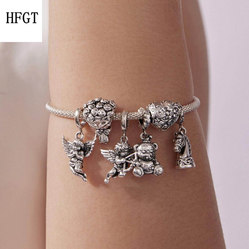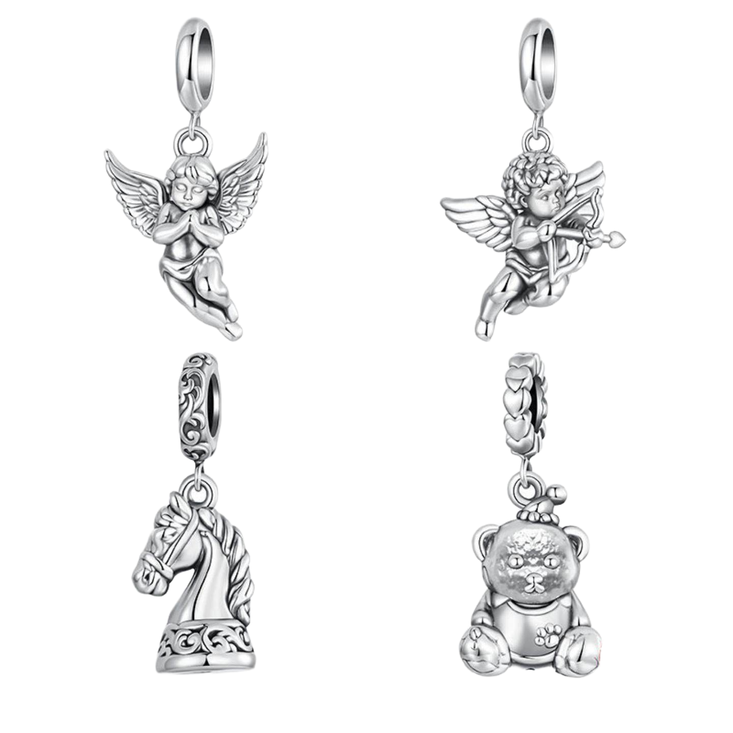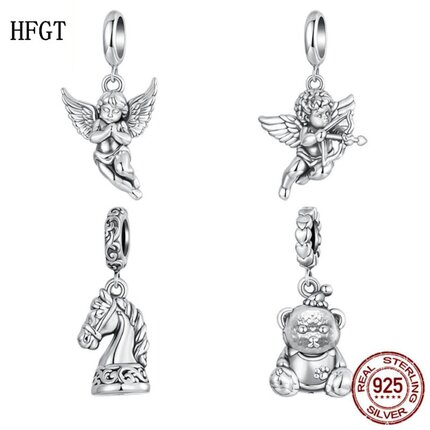 s925纯银丘比特天使翅膀小熊吊坠配件 浪漫可爱diy手链象棋串珠