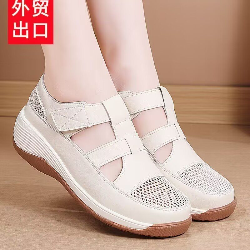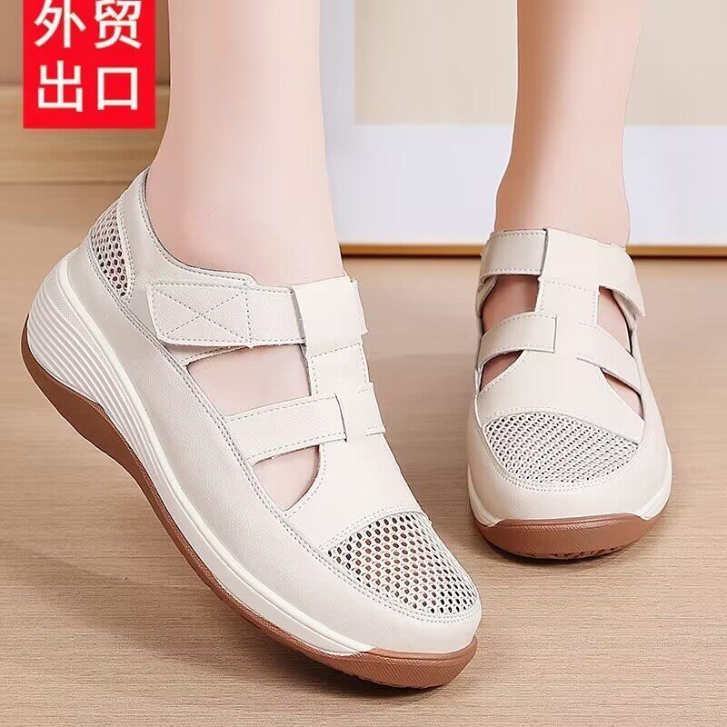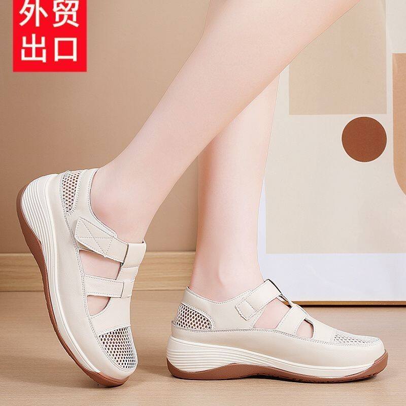 软皮软底女士凉鞋妈妈单鞋夏季新款百搭轻便透气休闲洞洞鞋女鞋