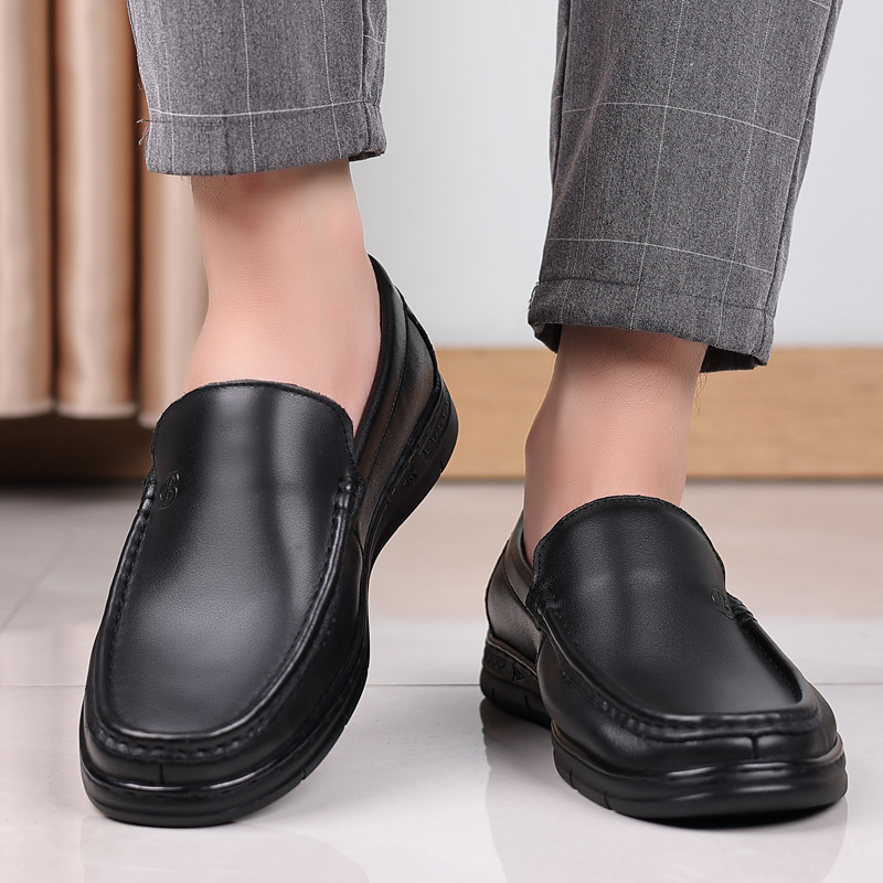 新款闲皮鞋男真皮软皮软底男鞋中老年年男士爸爸鞋懒人鞋豆豆鞋