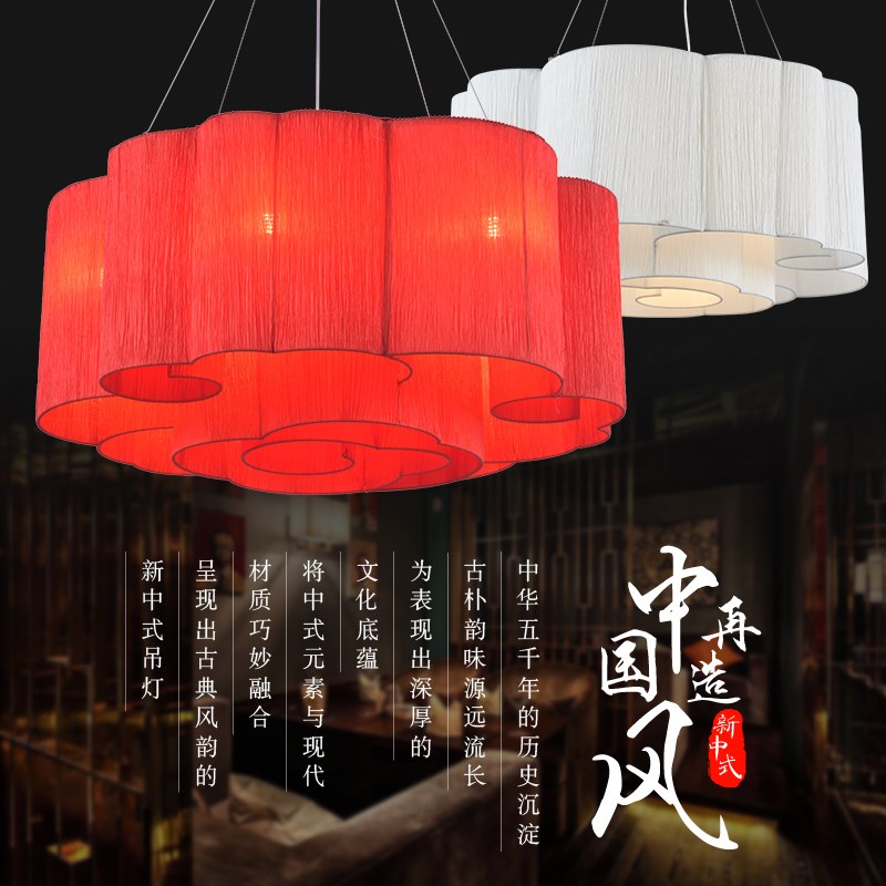 新中式吊灯红色布艺祥云灯酒店茶楼餐厅客厅客栈古典中国风圆形灯