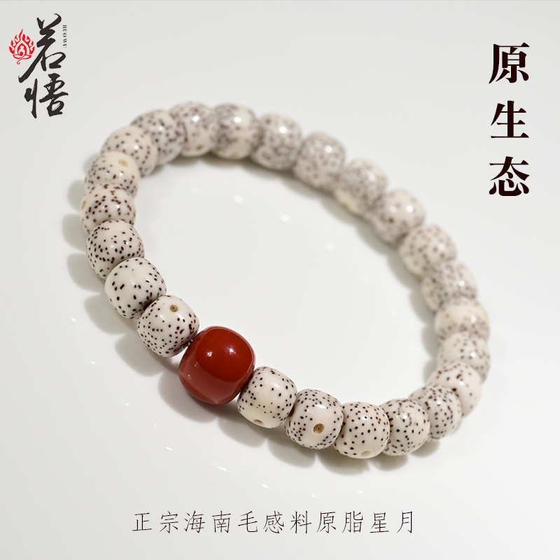 海南原生态星月菩提子手串单圈高密顺白情侣手链男女佛珠南红配饰