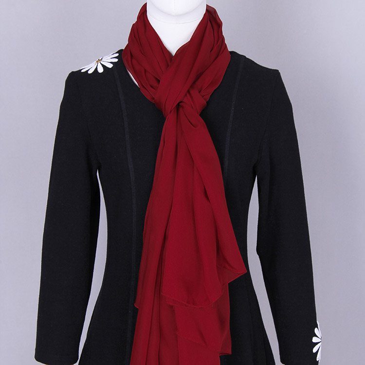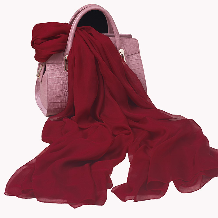 秋冬季真丝丝巾纯色女韩版长款围巾枣红百搭披肩酒红色100%桑蚕丝