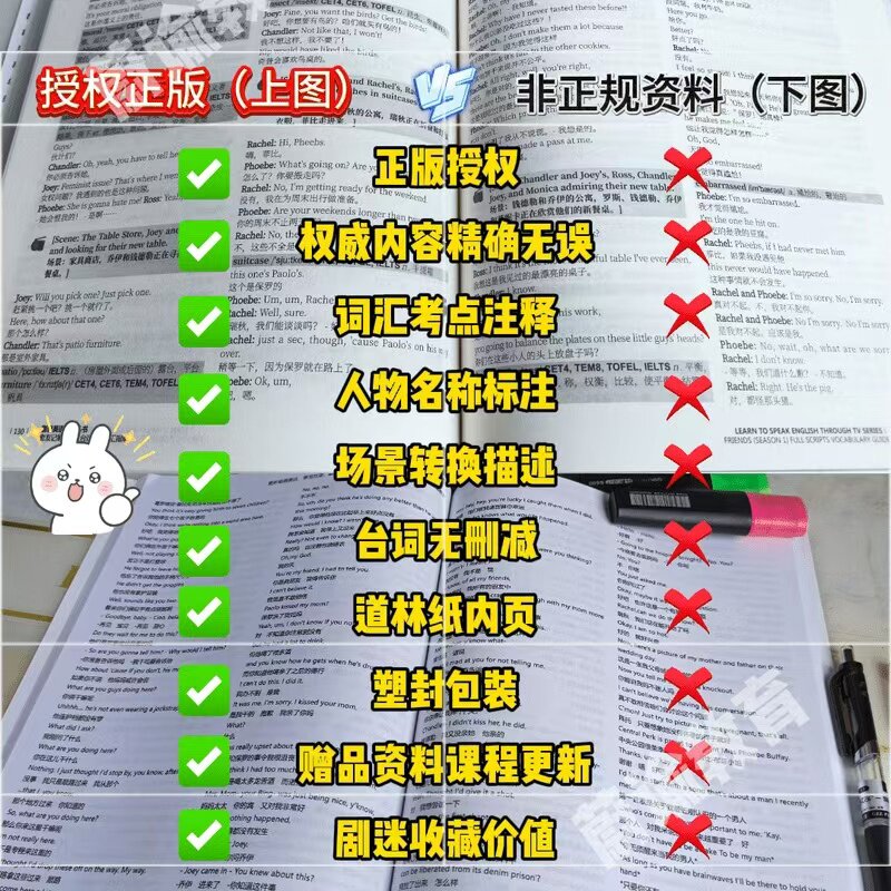 老友记台词全考点词汇指南中英文双语剧本笔记英语学习口语精讲口语听力单词四六级托福雅思周边书送完整版视频音频