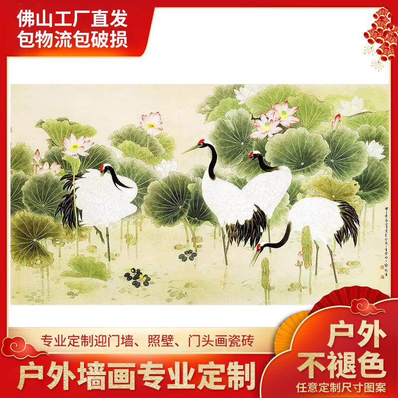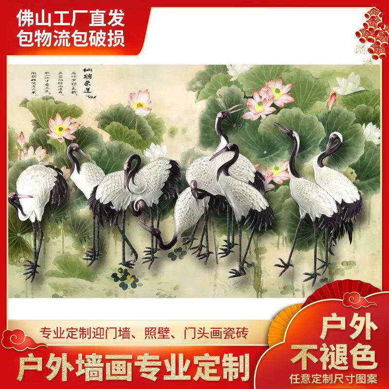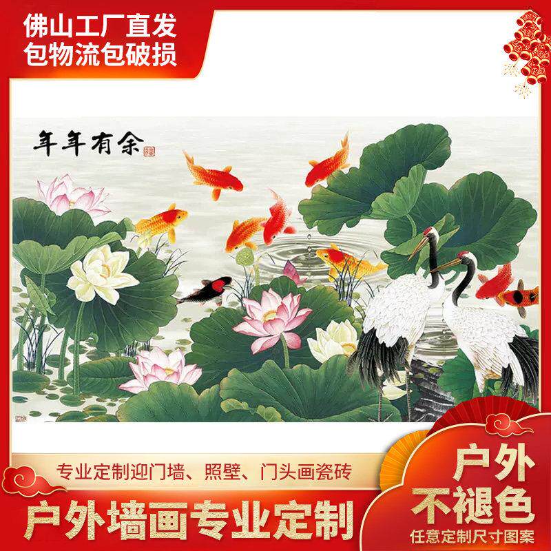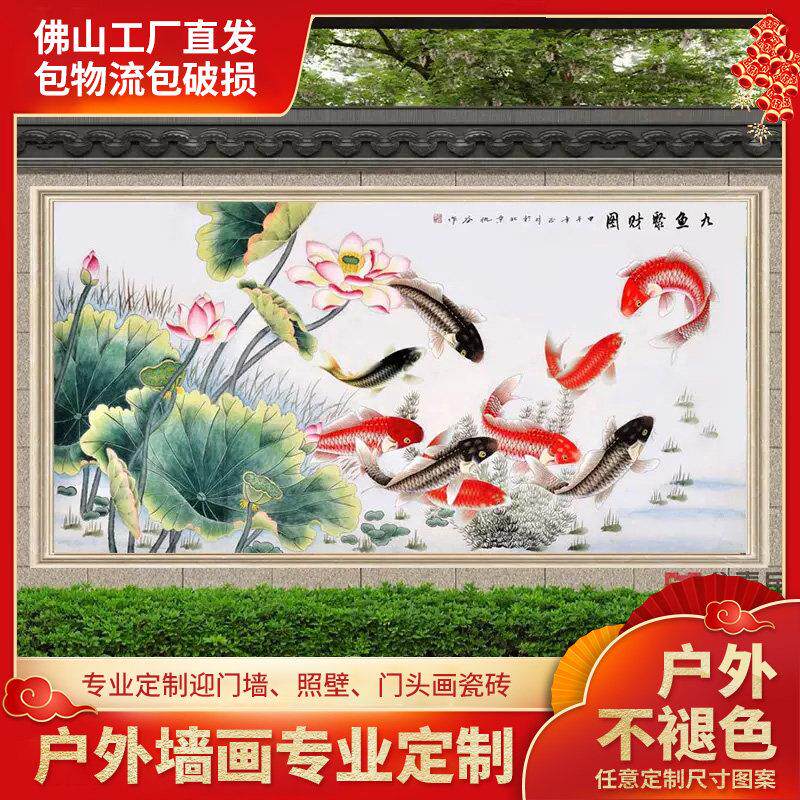 新中式九鱼图山水定制农村别墅庭院户外瓷砖背景影壁墙迎门墙壁画