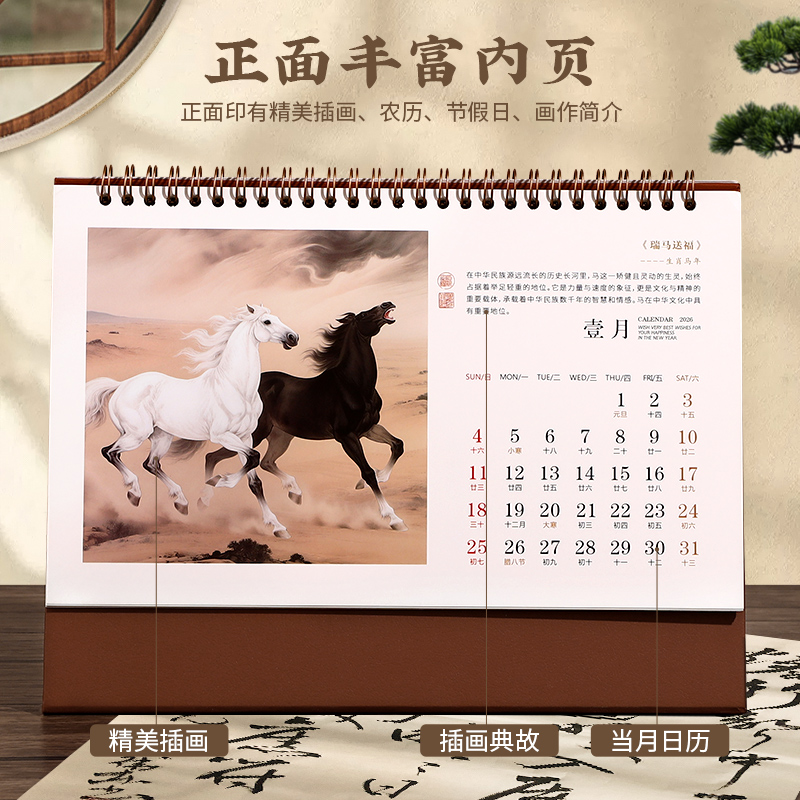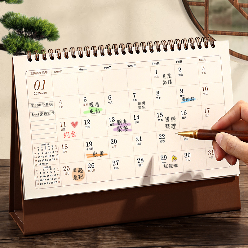 木雷2026年台历创意中国风镂空工艺桌面摆件日历本计划本企业礼品定制定做diy台历大格子记事本打卡马年日历