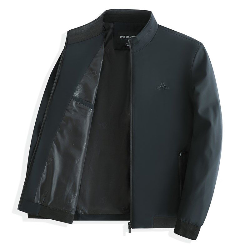爸爸装春秋薄款夹克衫中年立领男外套春季中老年宽松夹克老人上衣