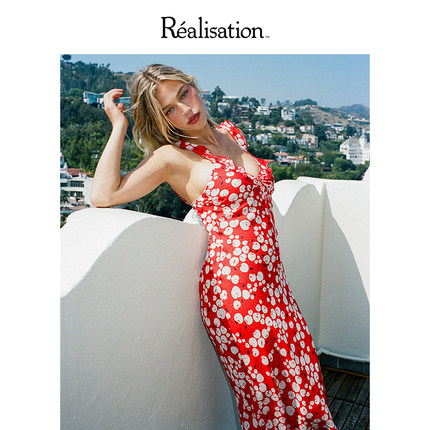 RealisationPar 连衣裙红色樱桃真丝斜裁中长款吊带裙 The Gemma