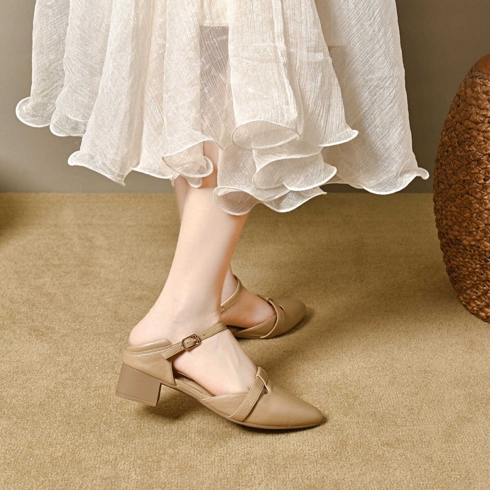 6107夏季新款女士凉鞋单鞋透气软底粗跟尖头中跟百搭时尚单鞋皮鞋