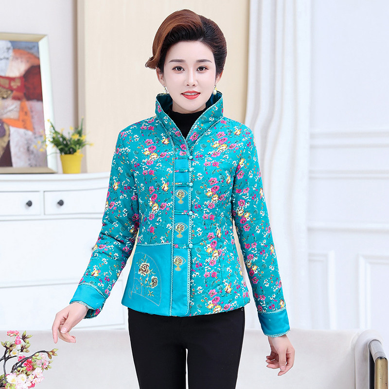 妈妈装民族风修身小棉衣短款夹棉外套秋冬新款唐装薄款棉袄小个子