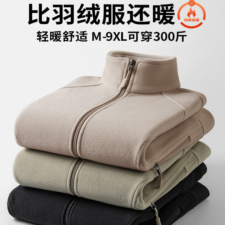 男士休闲外套夹克羊羔绒抓绒衣加绒加厚加大码上衣爸爸装男款宽松