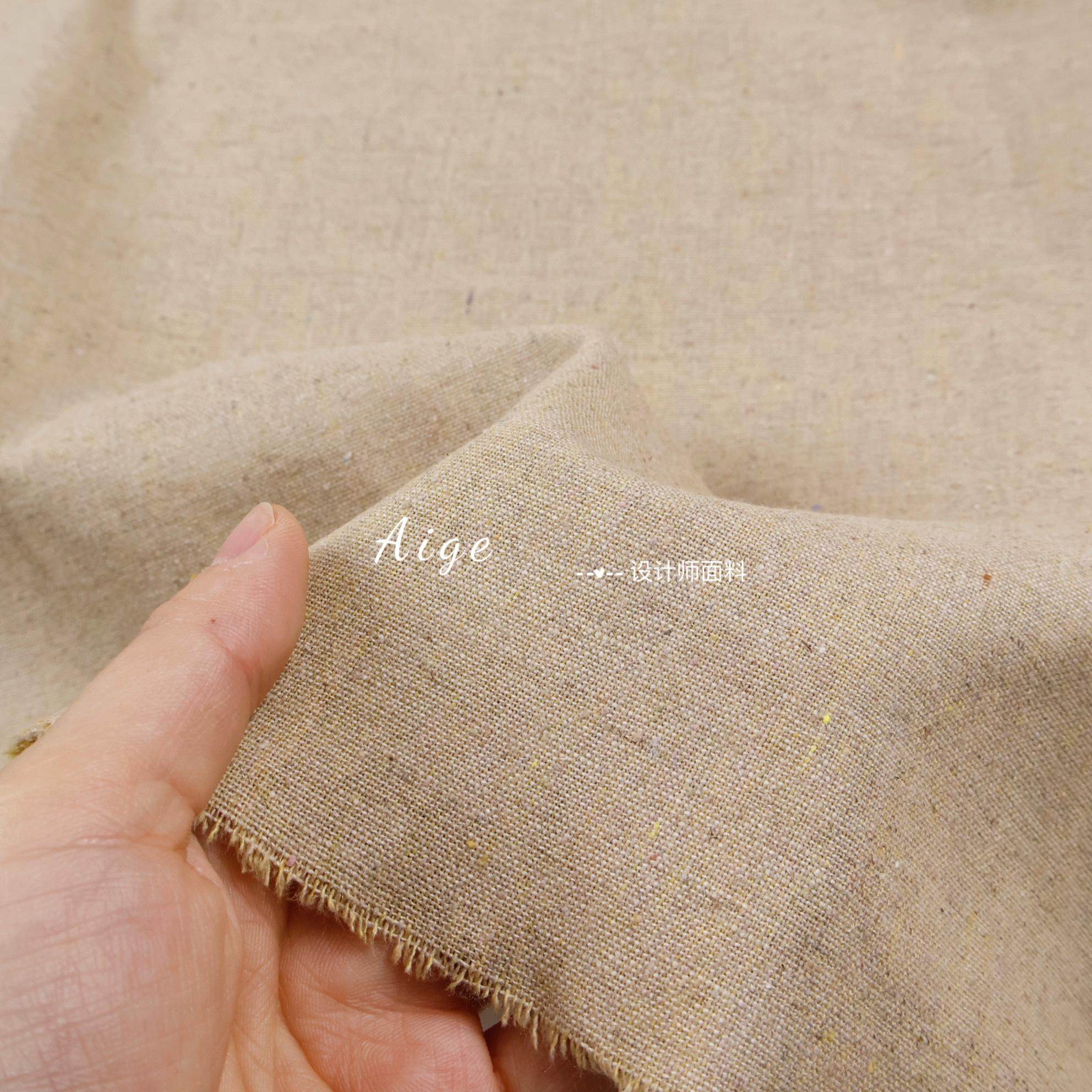 进口亲肤 黄麻色色织彩点纯亚麻面料春天套装连衣裙裤子马甲布料
