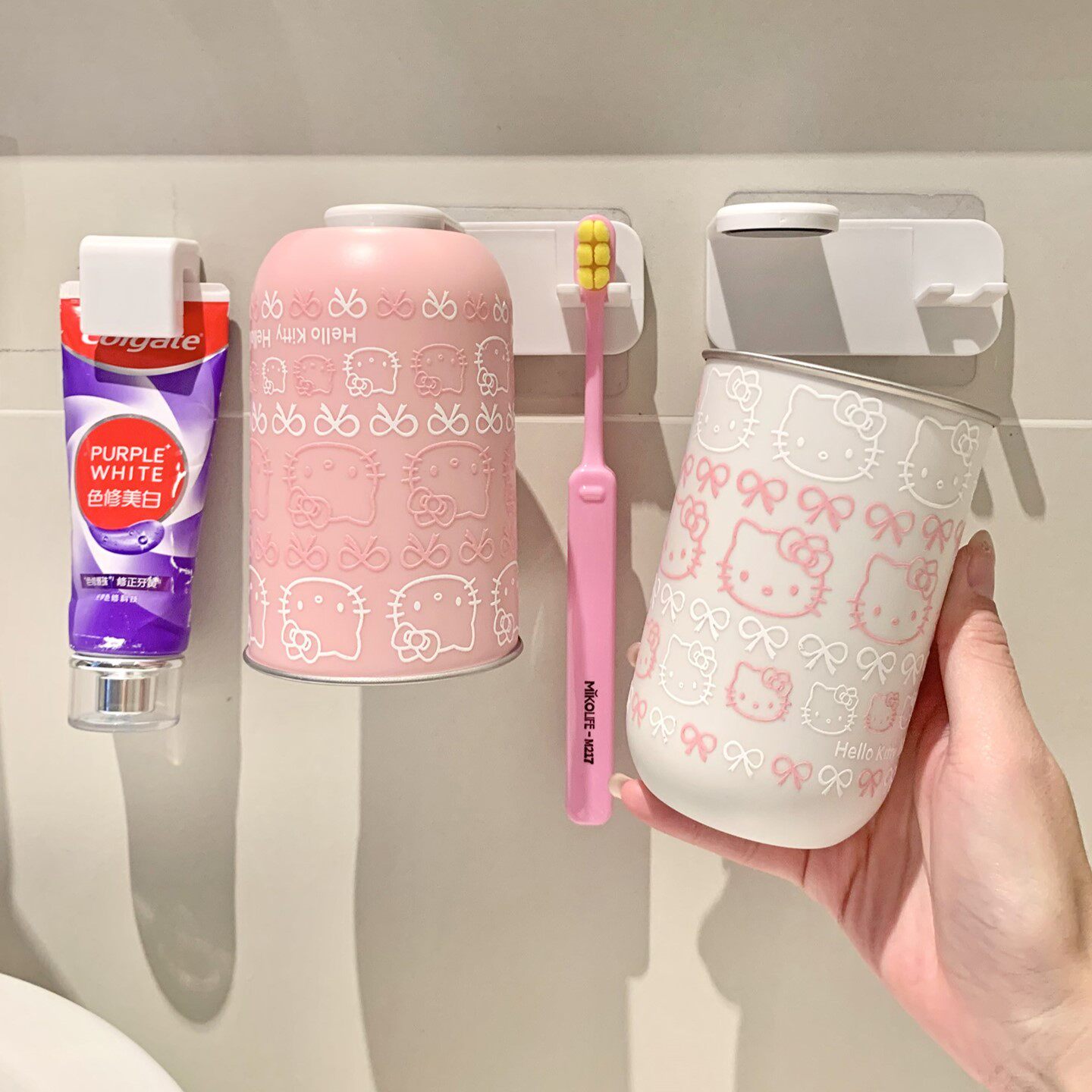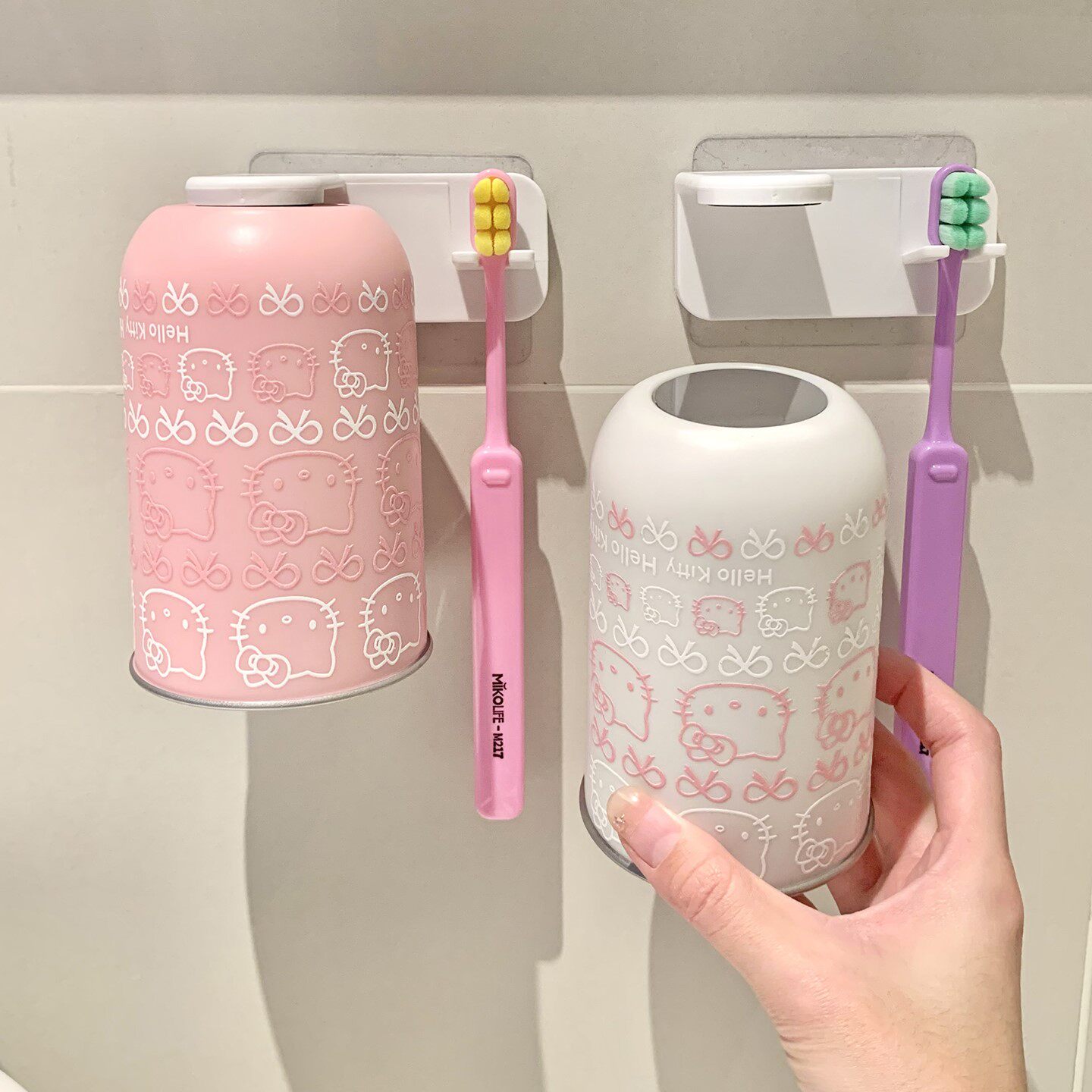 日式可爱磁吸漱口杯牙刷置物架壁挂刷牙杯倒挂电动牙刷挂架免打孔