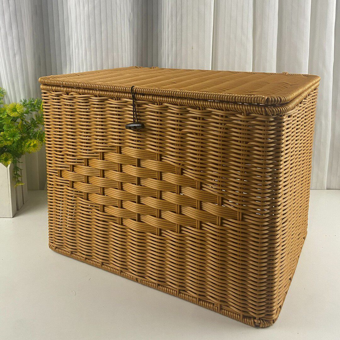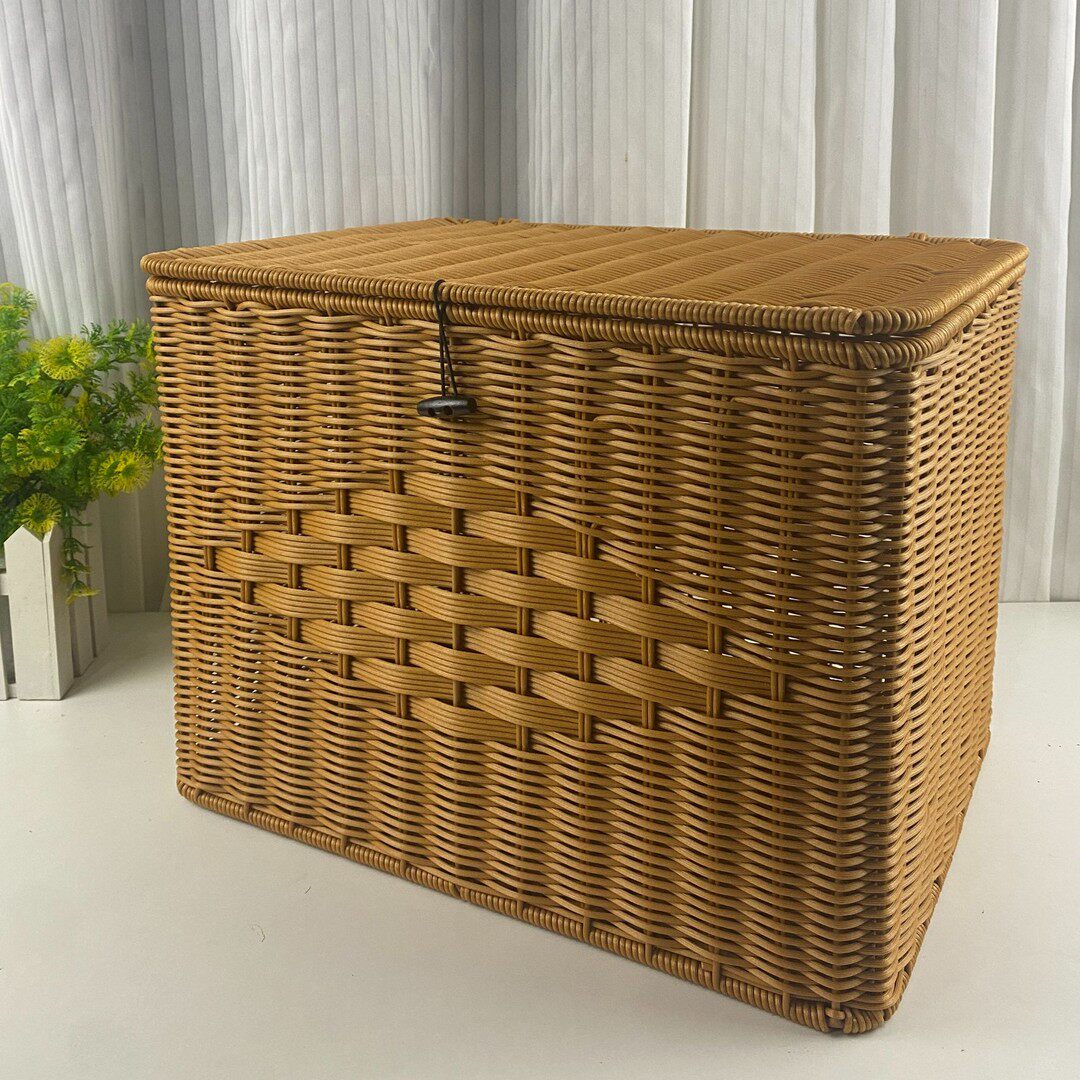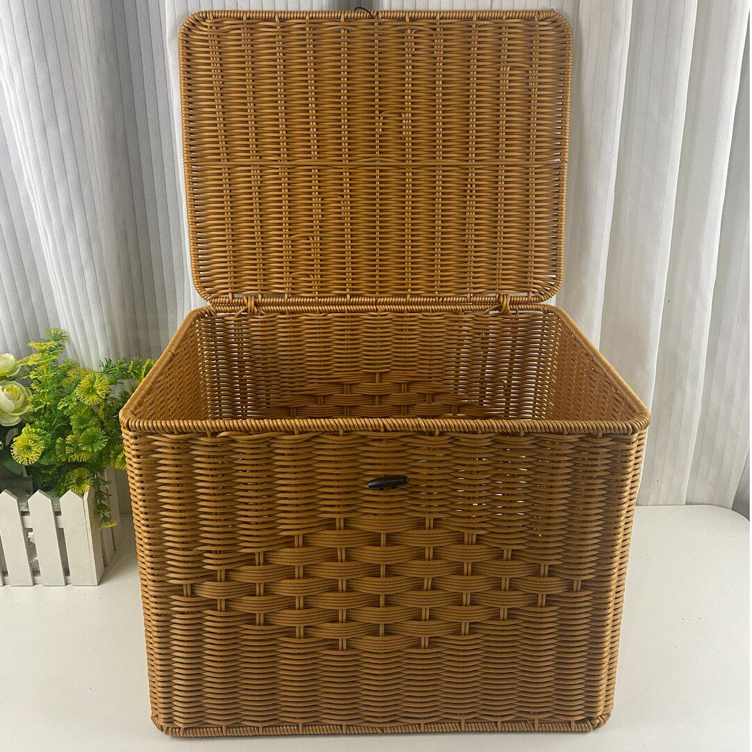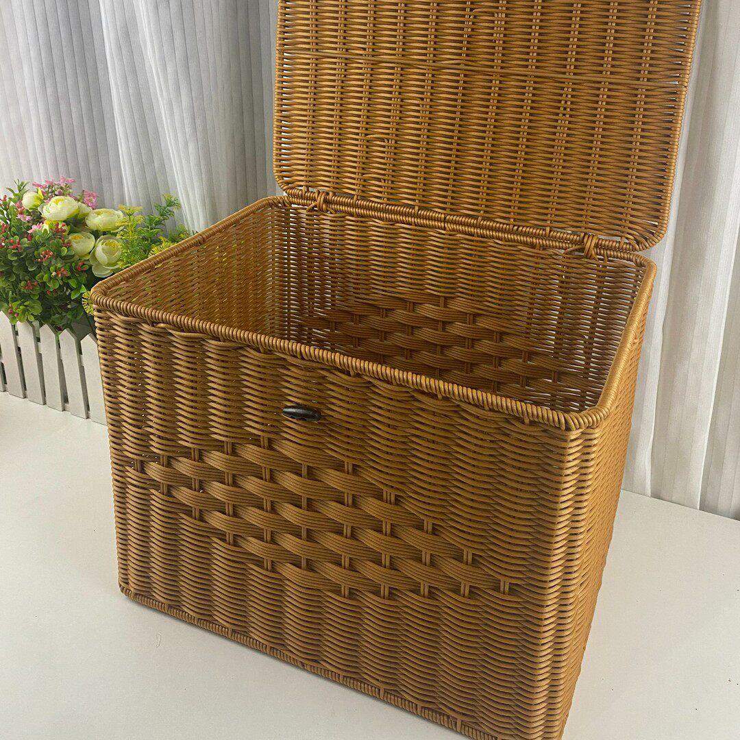 X5仿藤棕色抽收纳箱手工清洁户外家用买菜藤编篮子大容量储物客厅