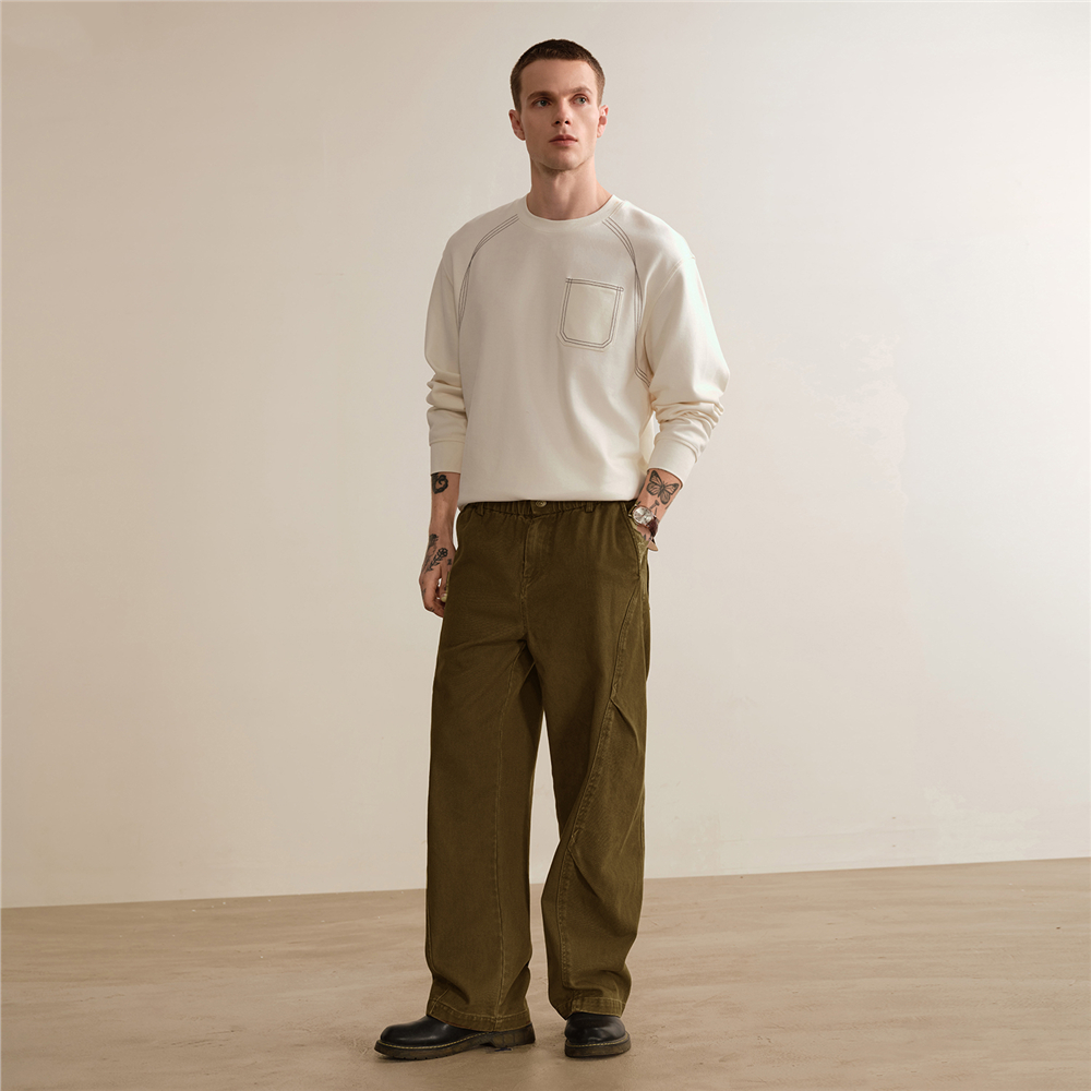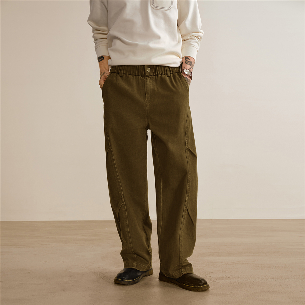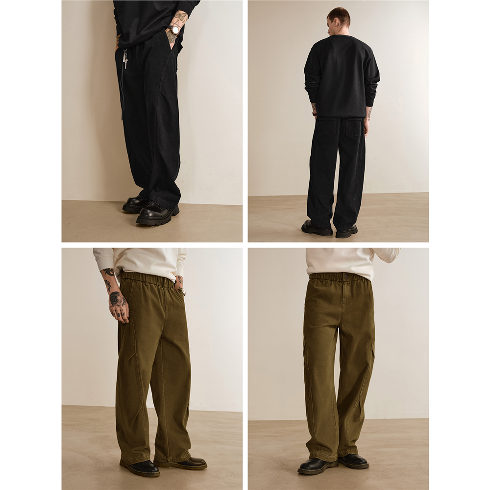 设计师款佐丹奴裤子男纯棉分割褶皱长裤男士松紧腰休闲裤18115811