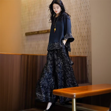 欧货高端夏季中老年妈妈真丝套装时尚加肥大码阔腿裤气质两件套女