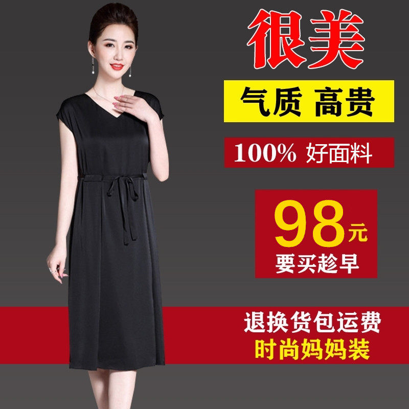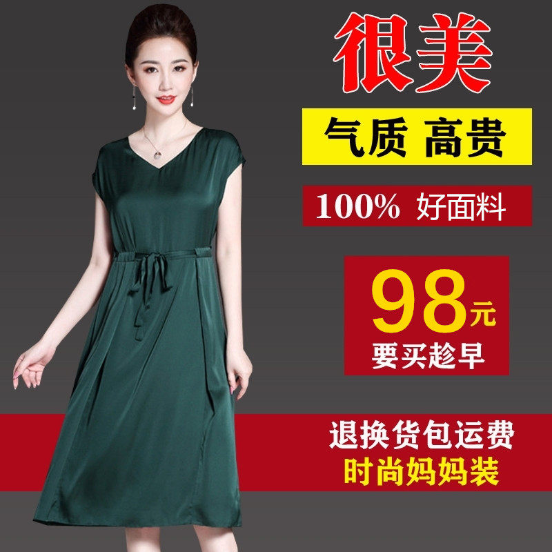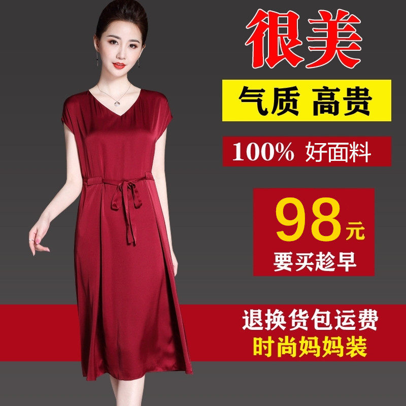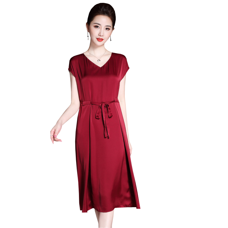 杭州真丝连衣裙女2022夏装新款韩版重磅桑蚕丝遮肚系带裙子中长款