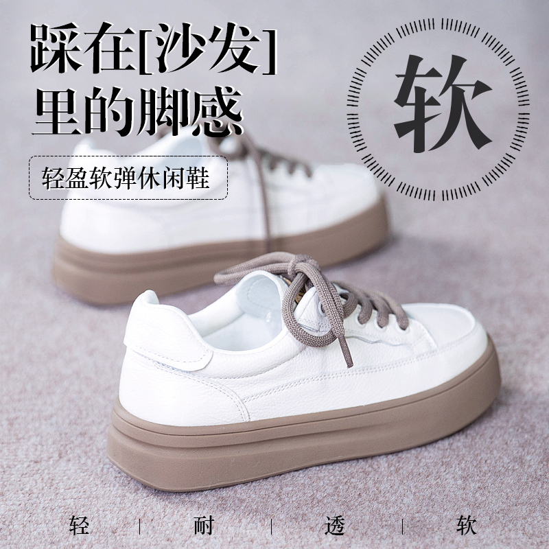 休闲女鞋2025新款小白鞋春夏季真皮单鞋软底鞋子头层牛皮百搭防滑